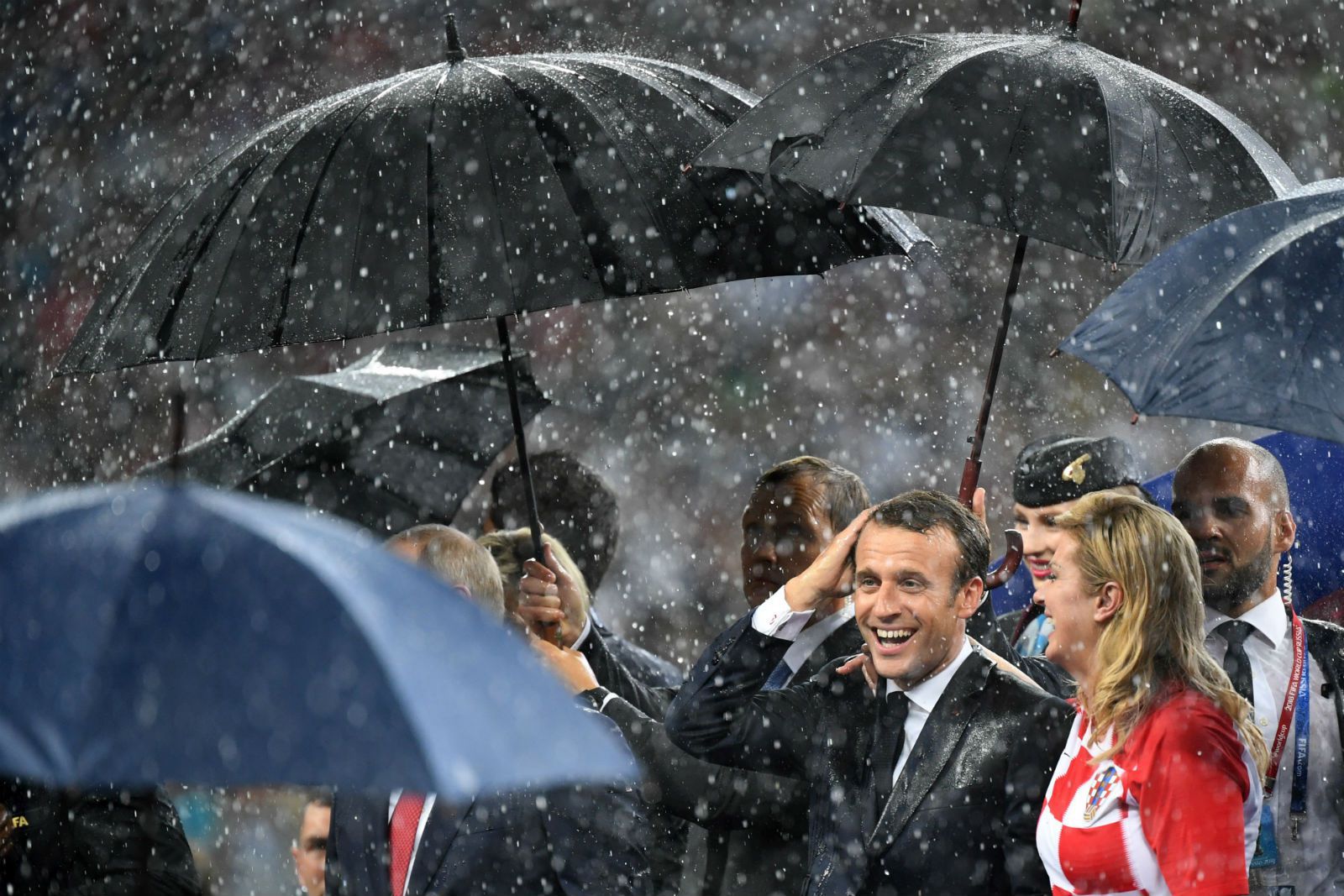 Naravno da im to sreću nije moglo pokvariti, ali sve je izgledalo pomalo bizarno. Naročito scena u kojoj su francuski predsjednik Emmanuel Macron i hrvatska predsjednica Kolinda Grabar-Kitarović čestitali svjetskim prvacima mokri do kože, piše Gol.hr.
