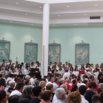 Zbor sastavljen iz više crkvenih korova uvježbao je domaći sin don Dragan Filipović, koji je prošle godine skladao sv. Misu, a za ovu prigodu preuredio neke njezine dijelove kao svoj dar župi za Stoljetnicu. Svirali su: Tamburaški sastavi iz Bijeloga Polja, Kruševa i Bune. Pjevali: zborovi iz Cima, Rotimlje, Gradine, Čapljine i Kruševa. Solisti: M. Jarak, K. Milićević, H. Merdžo i M. Perić. Zborom je dirigirao D. Kožul.