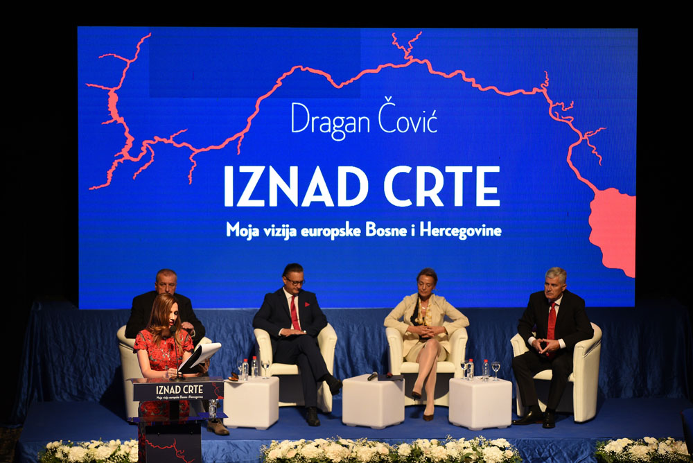 “Iznad crte – moja vizija europske Bosne i Hercegovine” knjizi hrvatskog člana Predsjedništva BiH dr. Dragana Čovića, govorili i potpredsjednica Vlade i ministrica vanjskih i europskih poslova Republike Hrvatske Marija Pejčinović Burić te profesor na Filozofskom fakultetu Univerziteta u Sarajevu prof. dr. sc. Ugo Vlaisavljević.