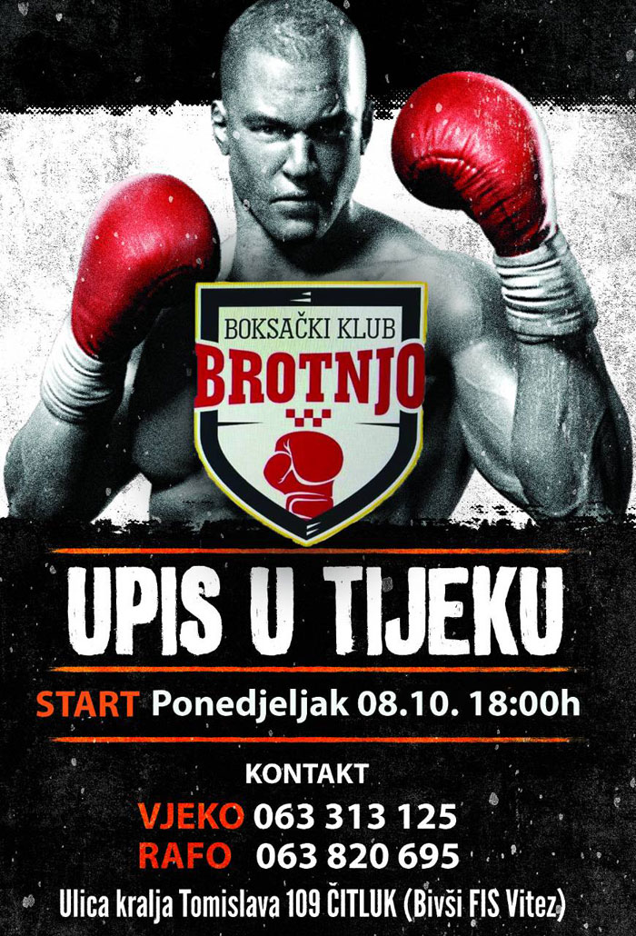 Po prvi put, u Čitluku je osnovan Boksački klub Brotnjo, sportska udruga kojoj je glavni cilj promocija boksa kao plemenite vještine. Naša vrata otvorena su za članove svih generacija koji žele trenirati i učiti o ovom olimpijskom sportu. Želja nam je zajedničkim radom i zalaganjem doprinijeti sportskom ozračju Brotnja, uključiti što više mladih i educirati ih o prednostima bavljenjem sportom. Naša dosadašnja saznanja ukazuju na veliku zainteresiranost Brotnjaka za treninge što nam je svakako dodatno zadovoljstvo i vjetar u leđa da ostanemo ustrajni u ovoj ideji.