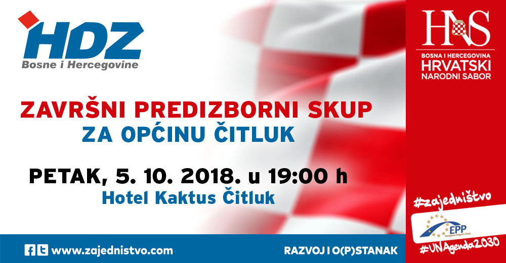 Općinski odbor HDZ-a BiH Čitluk poziva sve članove i simpatizere stranke na završni predizborni skup za općinu Čitluk povodom nedjeljnih Općih izbora.