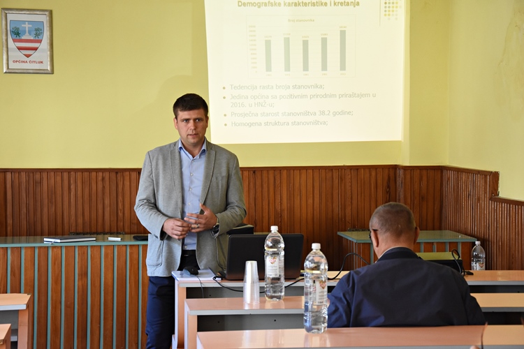 Slaven Markota, koordinator Općinskog razvojnog tima, na početku sastanka nazočnima u Maloj dvorani Kulturno-informativnog centra Čitluk predstavio je metodologiju i rezultate rada svih članova ORT-a, posebno se osvrćući na stratešku platformu koja uključuje socioekonomsku analizu, strateško fokusiranje, viziju i strateške ciljeve.