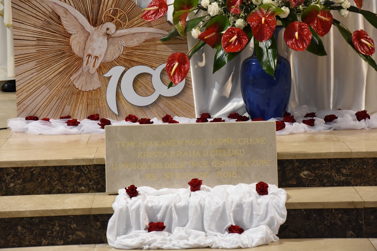 Na današnjoj proslavi blagdana Krista Kralja, nebeskog zaštitnika župe Čitluk, proslavljena je 100. obljetnica osnutka ove župe i blagoslovljen kamen temeljac za novu župnu crkvu.
