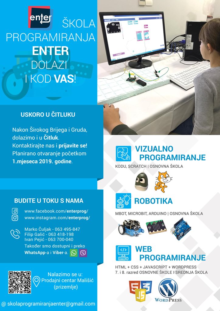 Želite li vašoj djeci probuditi svijet mašte i potaknuti ih na razmišljanje izvan okvira? Ukoliko je odgovor pozitivan, onda je Škola programiranja Enter pravi odabir za Vas.