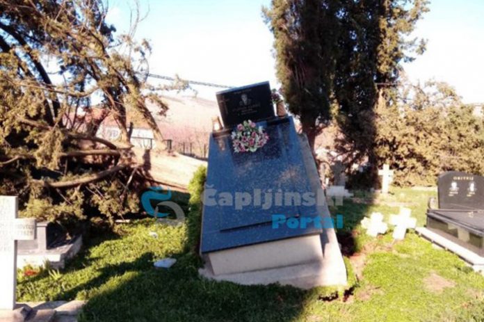 Kako javljaju čitatelji Caportal.net, vjetar je obarao stabla u cijelom groblju, a prilikom pada oštećeno je više nadgrobnih spomenika.