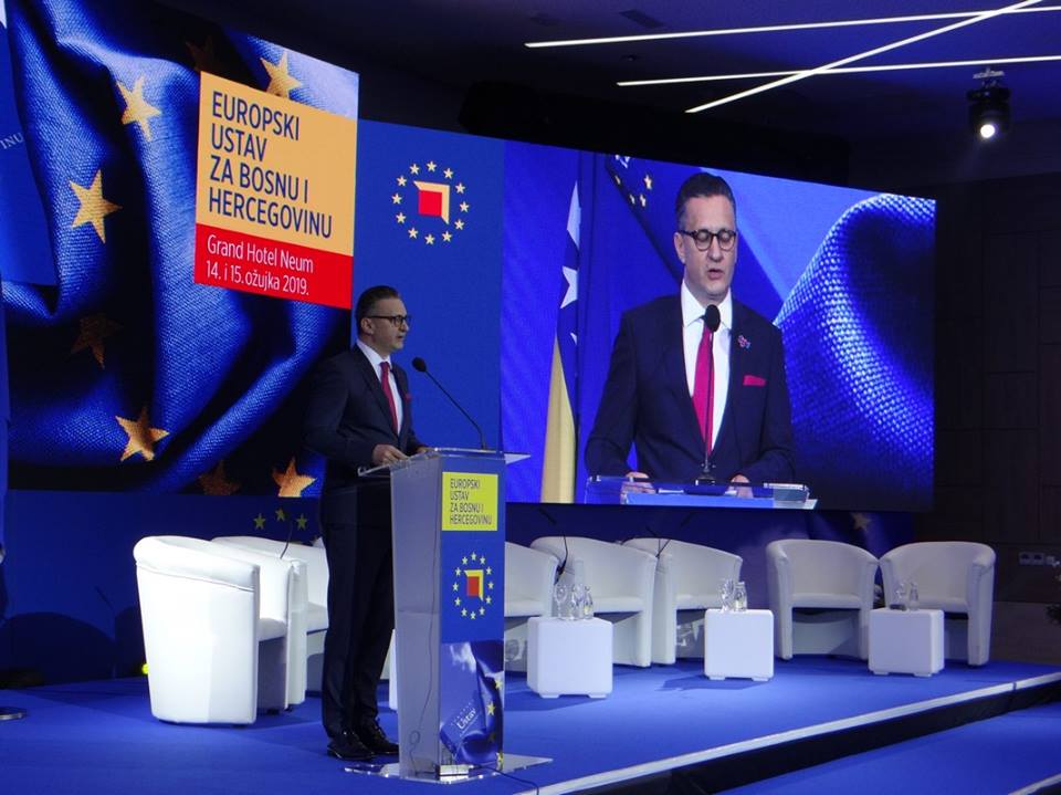 „Hrvatski narod ostaje predvodnik euroatlantskog puta i stabilnosti a ovom konferencijom nudimo novi pogled za europski ustav u BiH” zaključio je.