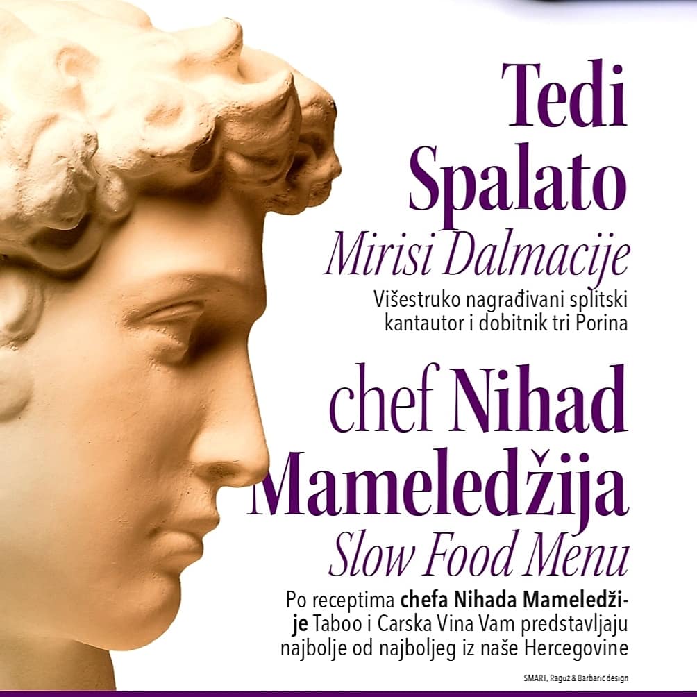 Naime, chef Nihad Mameledžija u prelijepom i unikatnom prostoru TABOO Bar Restauranta u Mostaru priprema specijalan „slow food“ jelovnik u tematskoj večeri posvećenoj najboljem od najboljeg iz Hercegovine kada su okusi i mirisi u pitanju.