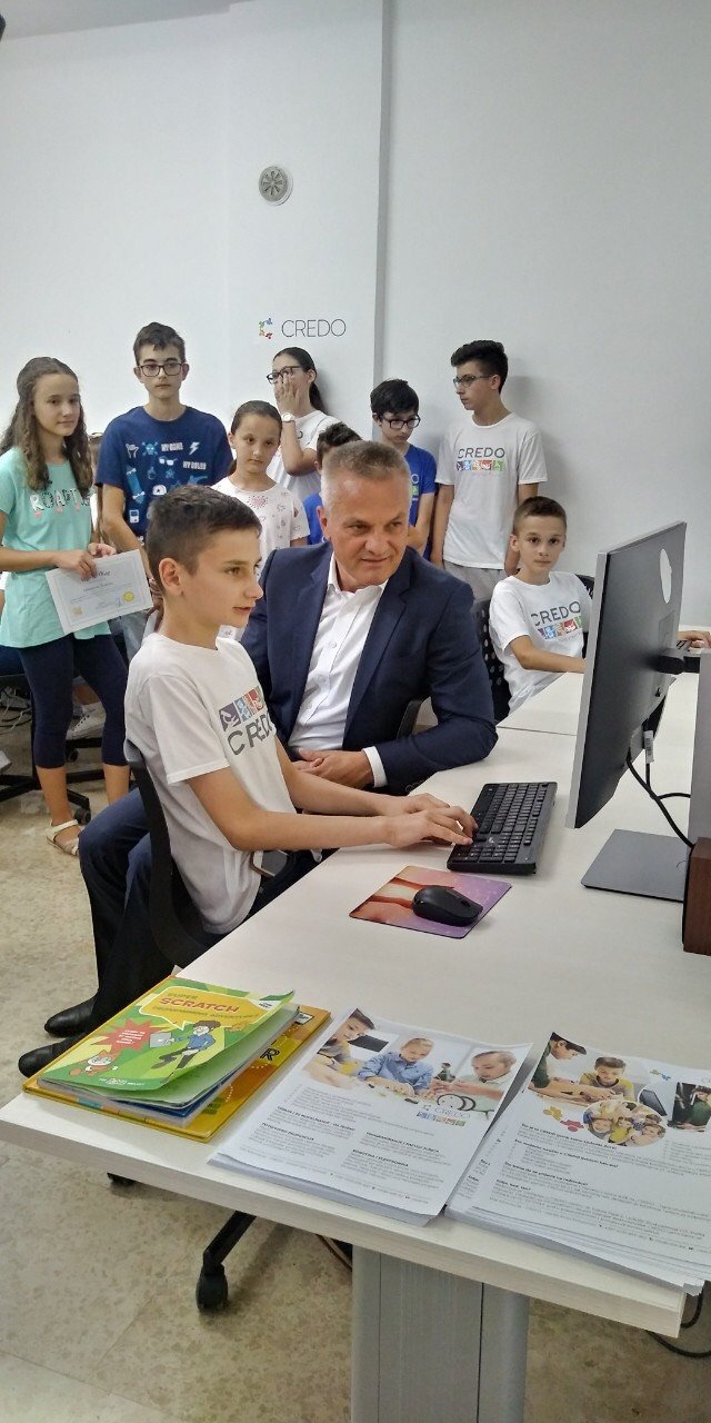 Milas je u pratnji gradonačelnika Barbarića obišao prostorije CREDO centra, upoznao se s radom CREDO ljetnog kampa, gdje su mu mali CREDO polaznici na praktičnim primjerima pokazali što su to sve naučili kroz dva protekla tjedna na edukativnim STEAM radionicama.