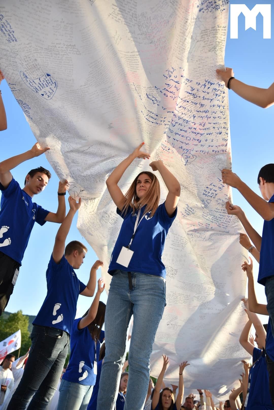 Pred početak misnog slavlja, u ponedjeljak 5. kolovoza, posljednje večeri 30. Festivala mladih u Međugorju, mladi su na oltar prinijeli sto metara dugo platno na kojemu su posljednjih dana ispisivali svoje molitve.
