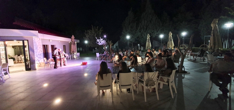 Pred prepunom ljetnom terasom restorana Fo’rest village u Međugorju glumci HNK Mostar Velimir Pšeničnik Njirić i Miro Barnjak izveli su popularnu pučku komediju “Rodijaci” nastalu prema kolumnama Petra Miloša i uz dramsku adaptaciju Rusmira Agačevića.