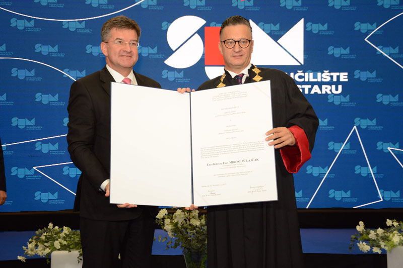 Sveučilište u Mostaru dodijelilo je titulu počasnog doktora (doctor honoris causa) Nj. E. Miroslavu Lajčáku, ministru vanjskih poslova Slovačke, bivšem predsjedavajućem Opće skupštine Ujedinjenih naroda i Visokom predstavniku u BiH.