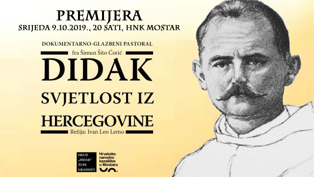 Za godišnjicu rođenja franjevca i jednog od najvećih ljudskih veličina Hercegovine fra Didaka Buntića, 9. listopada, s početkom u 20 sati, Hrvatsko narodno kazalište u Mostaru pripremilo je dokumentarno-glazbeni pastoral „Didak – svjetlost Hercegovine“ koji je napisao fra Šimun Šito Ćorić, a u režiji Ivana Lea Leme.