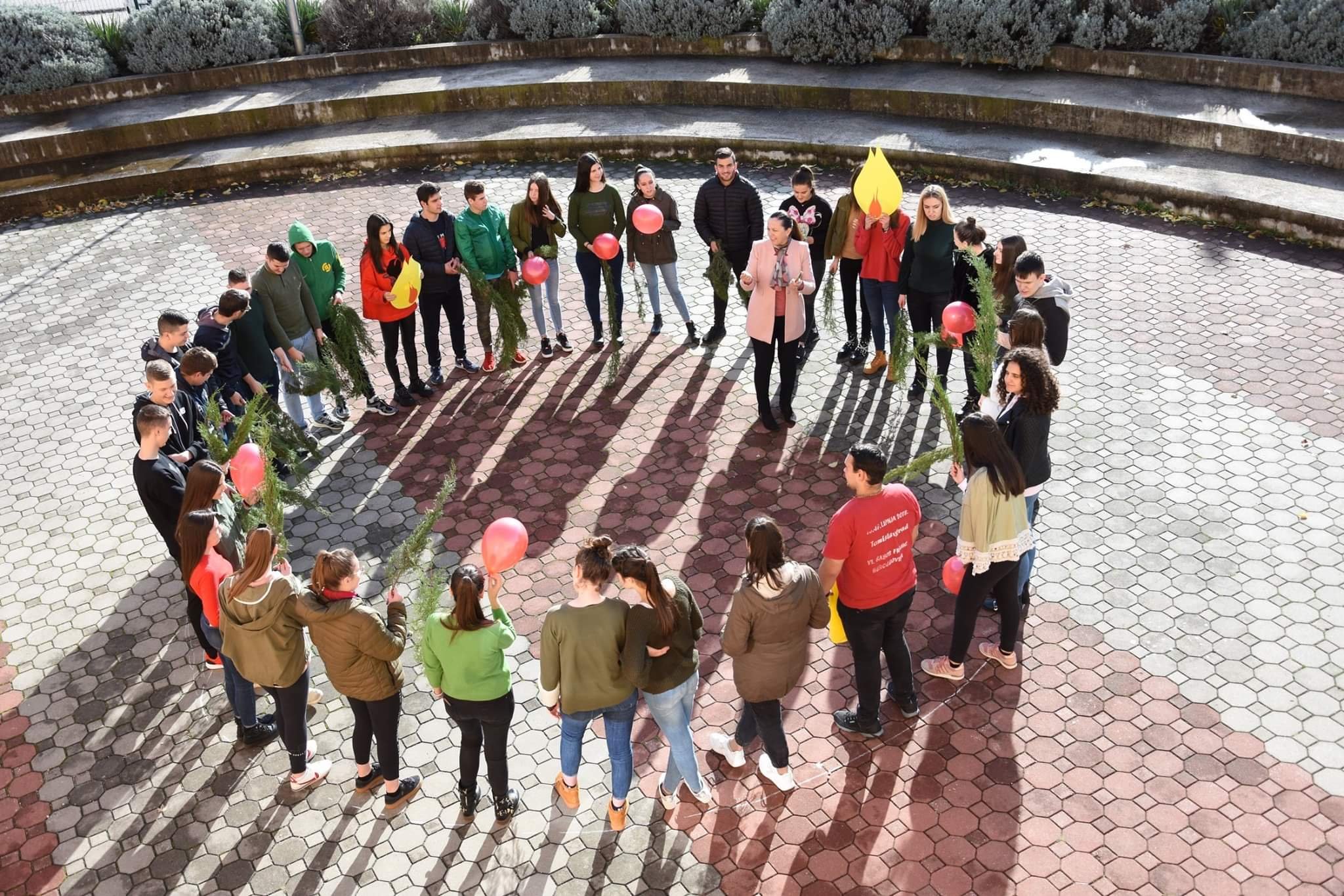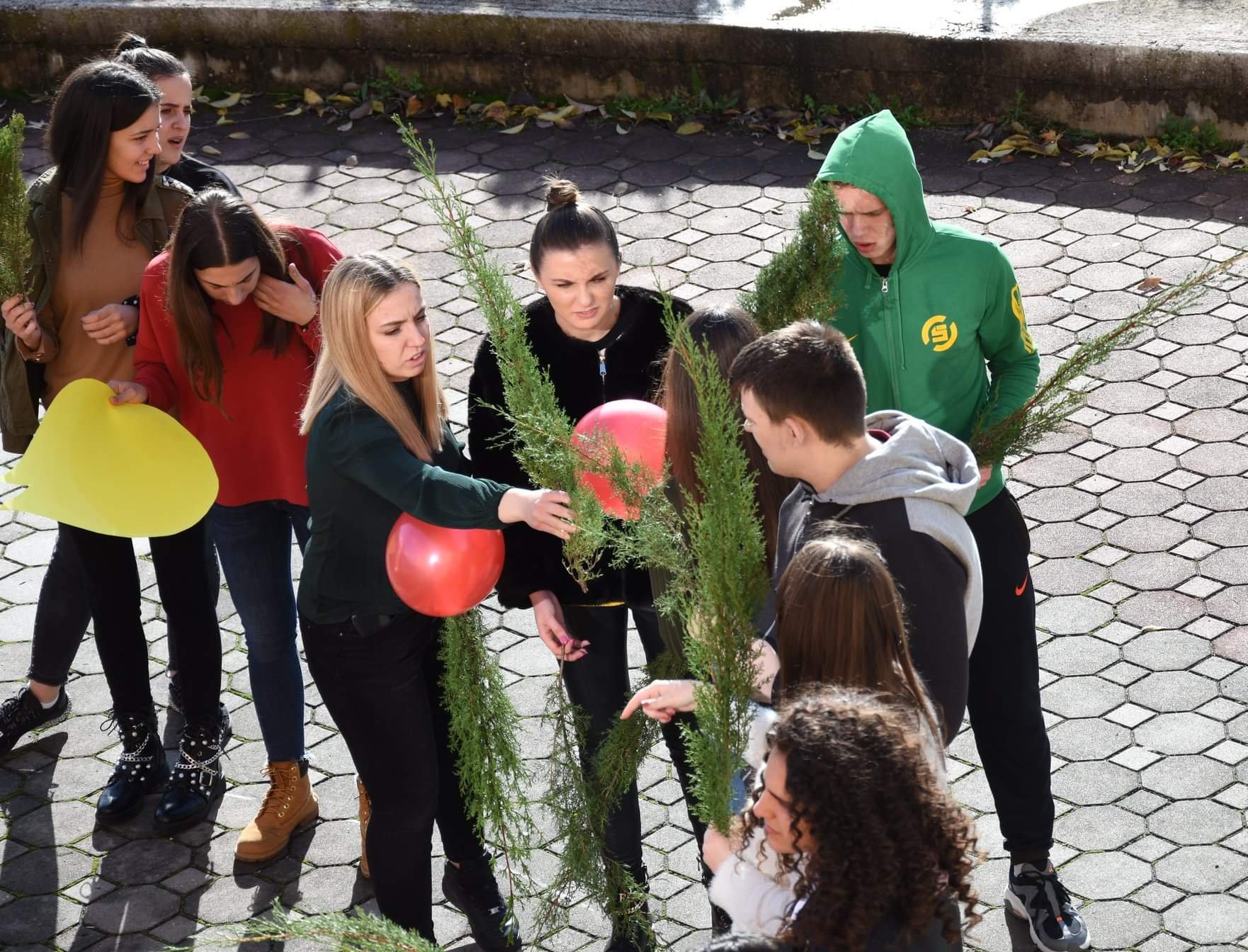 U suradnji sa Sandom Sušac, profesoricom ekonomske skupine predmeta, učenici 43. generacije maturanata danas su u dvorištu škole svojim tijelima oblikovali adventski vijenac.