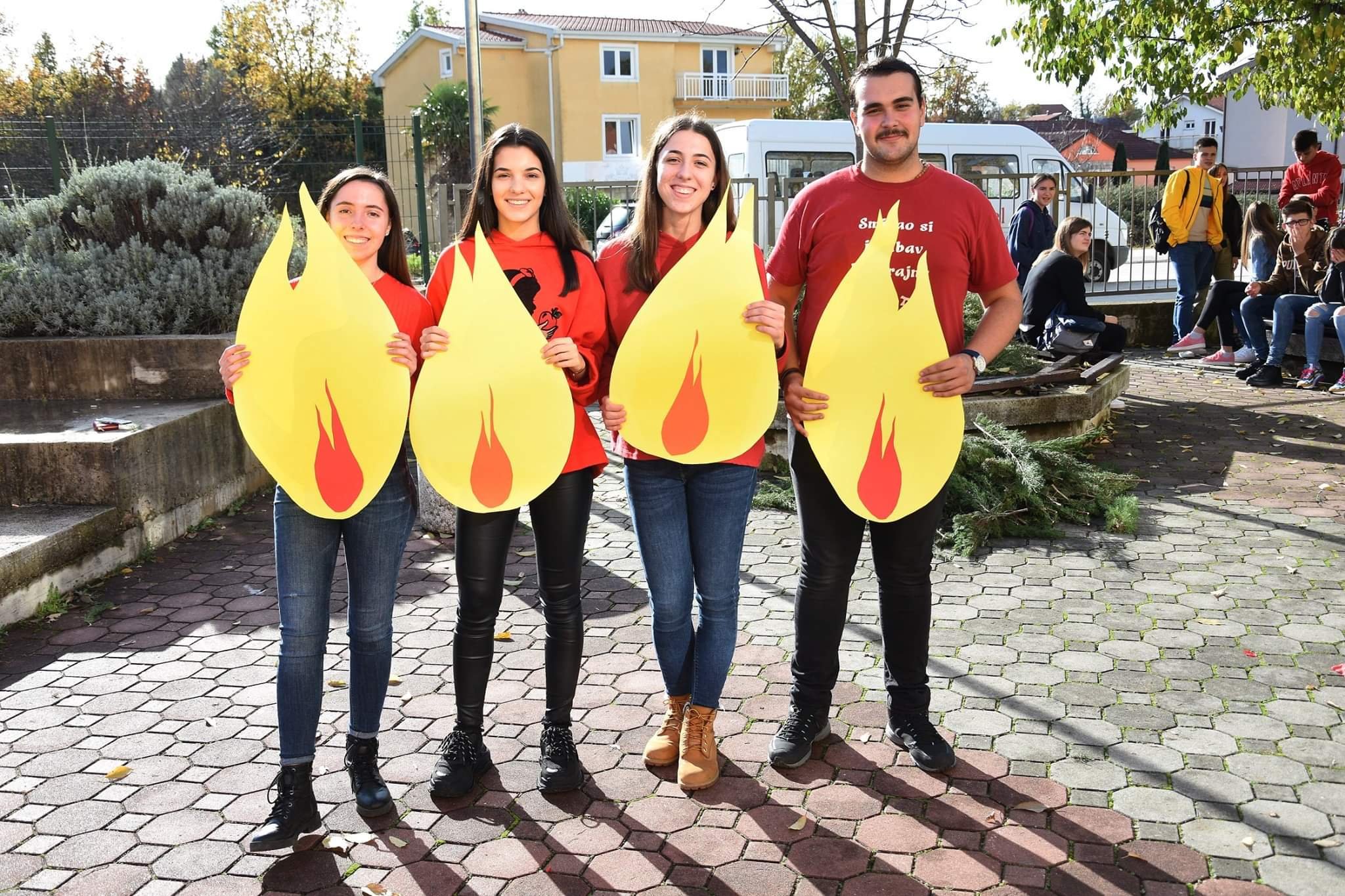 Svoje mjesto u ovom adventskom vijencu imale su i četiri svijeće koje u vrijeme Adventa simboliziraju nadu, mir, radost i ljubav. Svaka od ovih svijeća bila je jedna maturantica ili maturant, dok su njihove ostale kolege predstavljale krug vijenca koji u vremenu pred blagdan Božića simbolizira beskonačnu Božju ljubav.