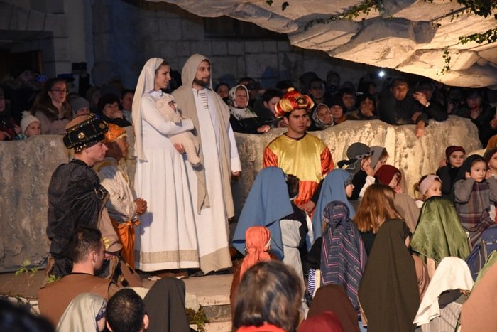 Uprizorenje Isusovog rođenja upotpunjeno je s mnogo plesa, veselja i pjesme što doprinosi dojmljivosti cijelog događaja, koji će nakon Badnje večeri biti organiziran još tri puta (28. prosinca nakon svete mise u 15 sati; 31. prosinca nakon svete mise u 18 sati i 1. siječnja nakon svete mise u 18 sati).
