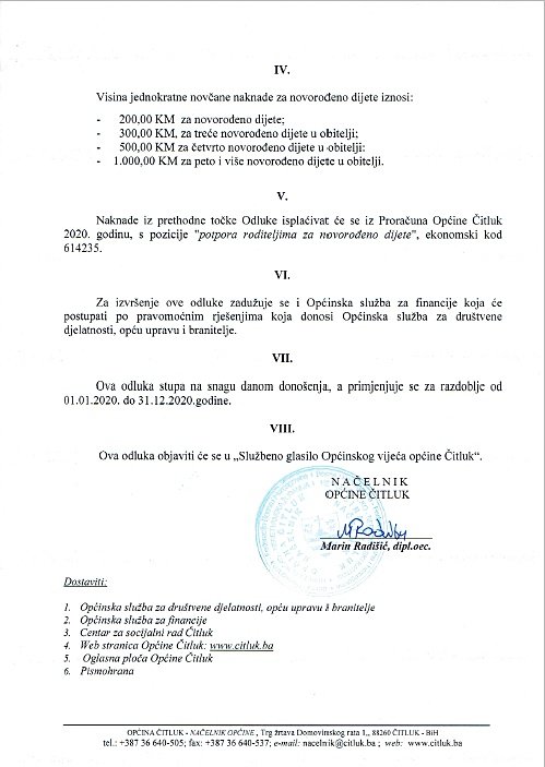 Odluku o jednokratnoj naknadi za novorođeno dijete donosimo Vam u nastavku: