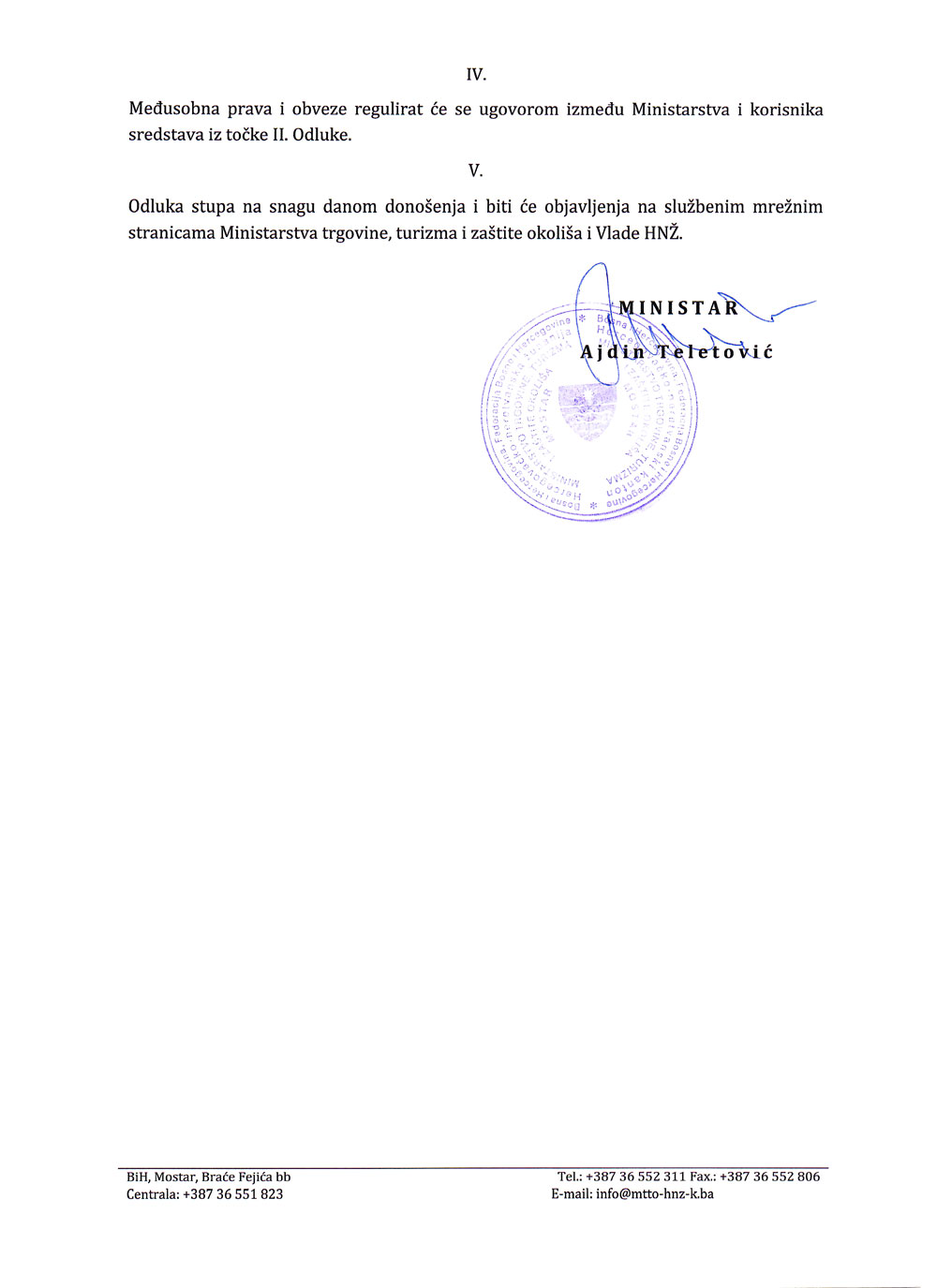 Ministarstvo trgovine, turizma i zaštite okoliša HNŽ donijelo je Odluku o izboru korisnika sredstava „Transfer neprofitnim organizacijama“ utvrđenih Proračunom za 2019. godinu.