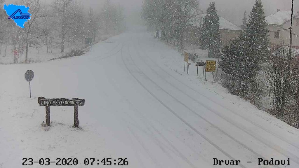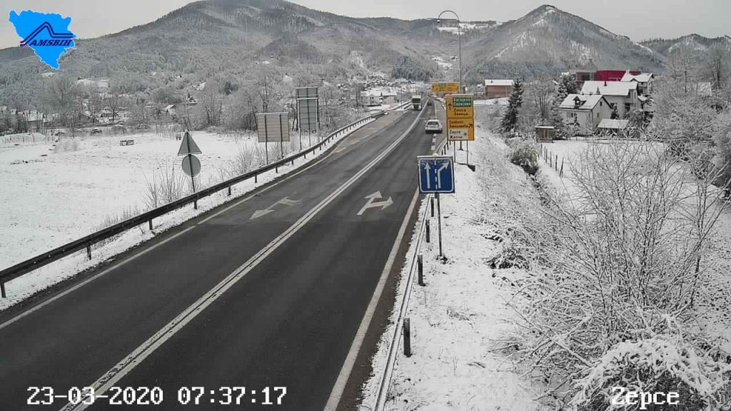 Na dionicama cesta u višim planinskim predjelima upozorava se mjestimično ugaženi snjeg i led na kolniku.