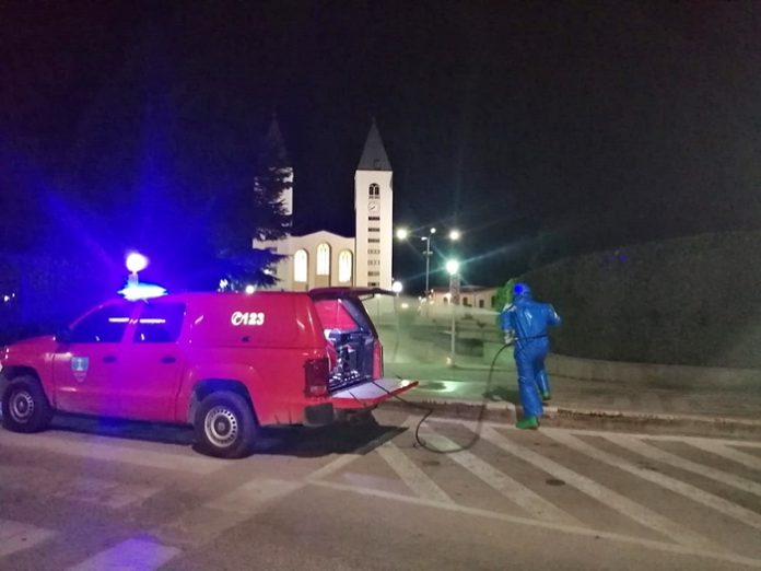 Sinoć su ponovno dezinficirane javne površine na području Čitluka i Međugorja. Pripadnici Vatrogasne postrojbe Čitluk dezinfekcijskim sredstvom na bazi klora dezinficirali su javne površine na kojima cirkulira veći broj ljudi zbog moguće opasnosti od pojave koronavirusa.