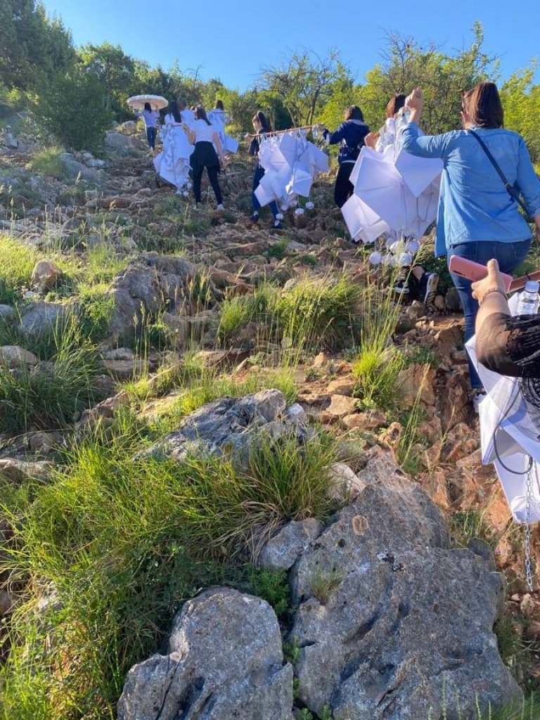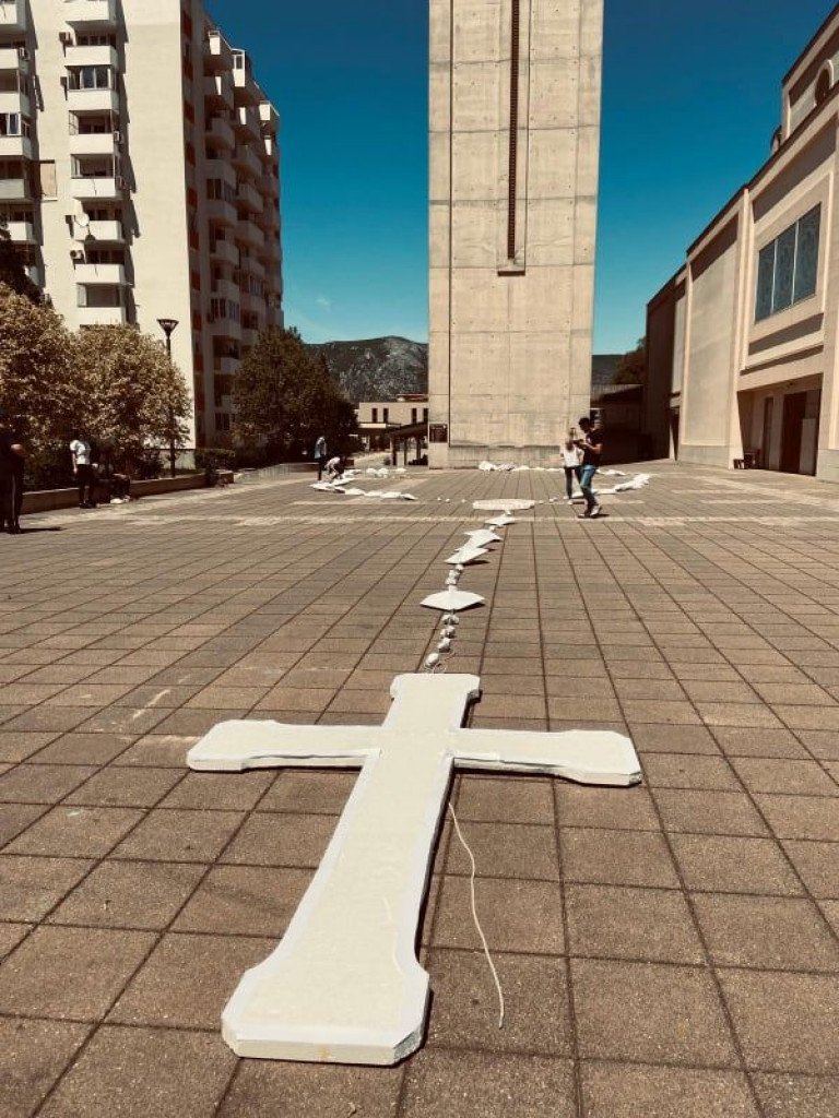 “Odlučile smo se napraviti jednu zahvalu Gospi što nas uči moliti. To nam je bila želja, da osim kroz molitvu, i vizualno onim što inače radimo napravimo zahvalu. Krunica je napravljena od papira, dok smo križ i medaljon napravile od stiropora. Duga je duga pedesetak metara, a rađena je mjesec i pol dana. Postavile smo je u međugorske molitvene oaze, na Brdo ukazanja, kod kipa Uskrslog te kod župne crkve svetog Jakova u obliku srca. U Mostaru smo krunicu postavili kod Zvonika mira. Tu nas je malo vjetar ometao, no ipak smo uspjeli napraviti ono što smo željeli. Hvala i našim prijateljima i susjedima koji su nam pomogli u svemu”, kazala je za hercegovina.info akademska slikarica Anela Korać.