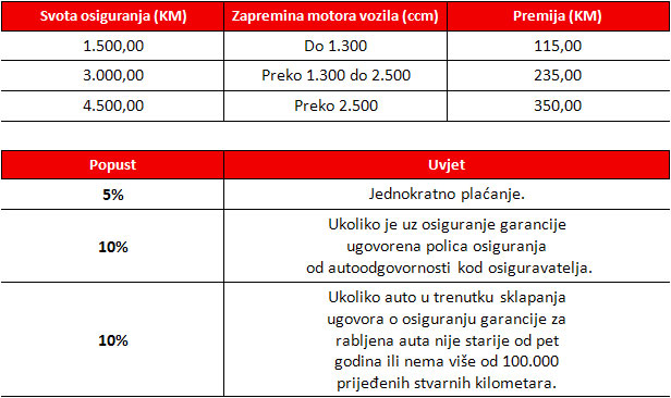 Central osiguranje d.d. je prvo osiguravajuće društvo u Bosni i Hercegovini koje u ponudi osiguranicima nudi garanciju za dijelove i uređaje koji se pokvare u vremenu redovne eksploatacije polovnog auta bez obzira na njegovu starost.