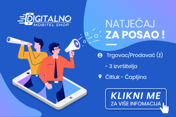 Digitalno – Mobitel Shop raspisao je natječaj za slobodna radna mjesta u novootvorenim poslovnicama na području Čitluka i Čapljine