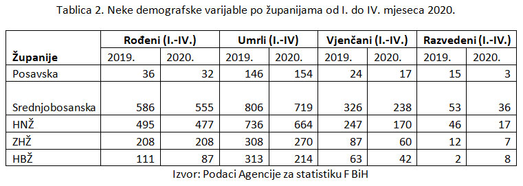 Slično kao i na razini F BiH tako je i kod ovih županija s hrvatskom većinom došlo do pada broja smrtnosti u prva četiri mjeseca ove godine u odnosu na isto razdoblje iz prošle godine za 288 ili 12%. To smanjenje smrtnosti u promatranim županijama kreće se od 5% (Posavska) do 31% (HBŽ).