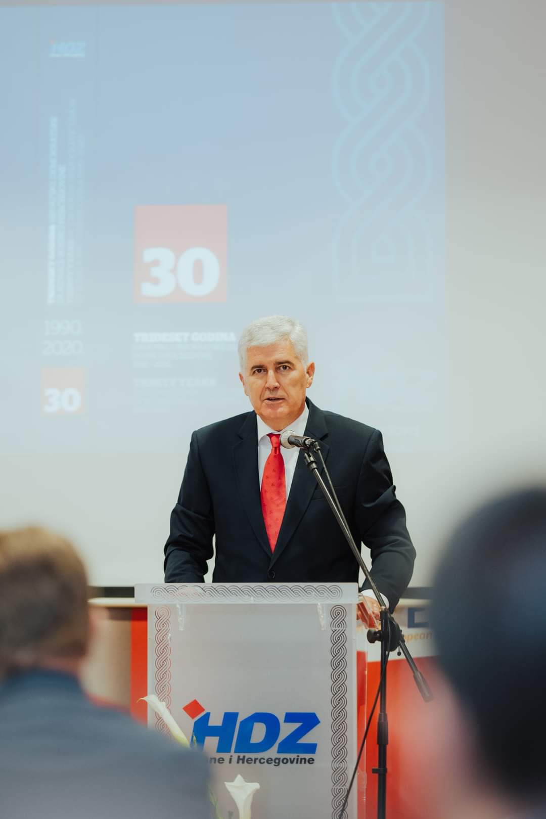 „Iako skromno obilježavamo ovih 30 godina, vjerujem da smo uspjeli ponuditi prihvatljiv način da svim našim članovima i simpatizerima čestitamo vrijednu i znakovitu obljetnicu, ali uputimo i riječi zahvale za doprinos i potporu kroz sva životna stranačka iskušenja kroz koja smo prolazili. Prigoda je prisjetiti se i svih onih koji danas nisu među nama, od naših utemeljitelja, članova, branitelja. Neka budu u našim mislima i molitvama kako su bili jučer u Zagrebu i danas u Mostaru. Još jedno veliko hvala svima Vama koji se zalažete za veličanstveni projekt HDZ-a BiH, od srca svima nama nek je sretna 30. obljetnica Hrvatske demokratske zajednice Bosne i Hercegovine“, zaključio je dr. Čović