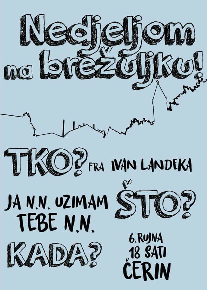 Nakon kratke pauze nastavljamo se susretati prve nedjelje u mjesecu na večernjoj svetoj misi i prigodnom programu uz gosta predavača na našem čerinskom brežuljku.