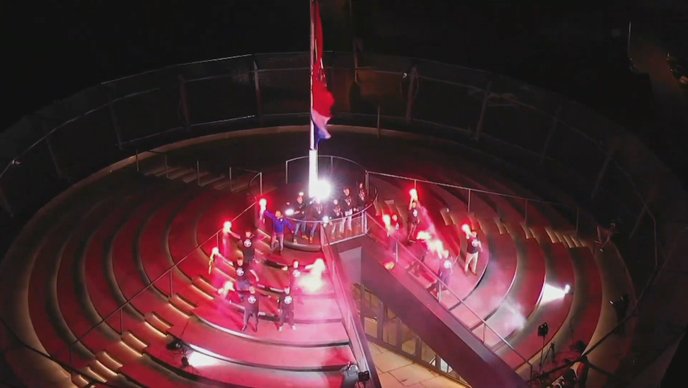 Vijori se na vrhu i zastava koju su podignule obitelji hrvatskih branitelja koje su ratne 1991. pod kišom granata u inat neprijatelju svaku noć dizali hrvatski stijeg.