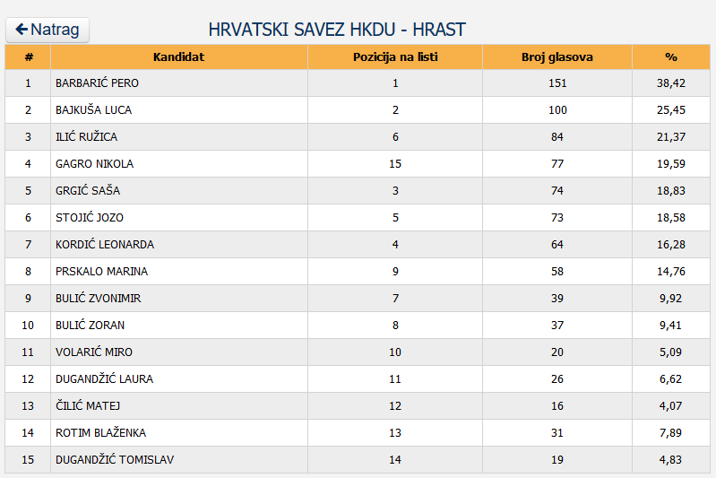 Slijedi Marko Antonio Brkić koji je osvojio 1.471 glas ili 23,98%, dok je Miljenko Dugandžić osvojio 312 glasova ili 5,09%.