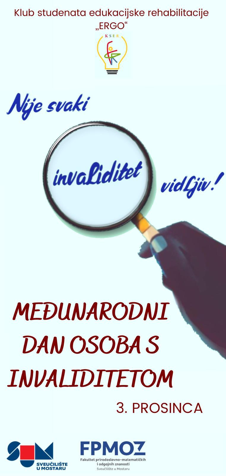 Želeći podići svijest opće populacije o osobama s invaliditetom, studenti edukacijske rehabilitacije, ispred Kluba studenata edukacijske rehabilitacije „ERGO“, i ove godine tradicionalno obilježavaju ovaj datum, i to pod krilaticom „Nije svaki invaliditet vidljiv“.