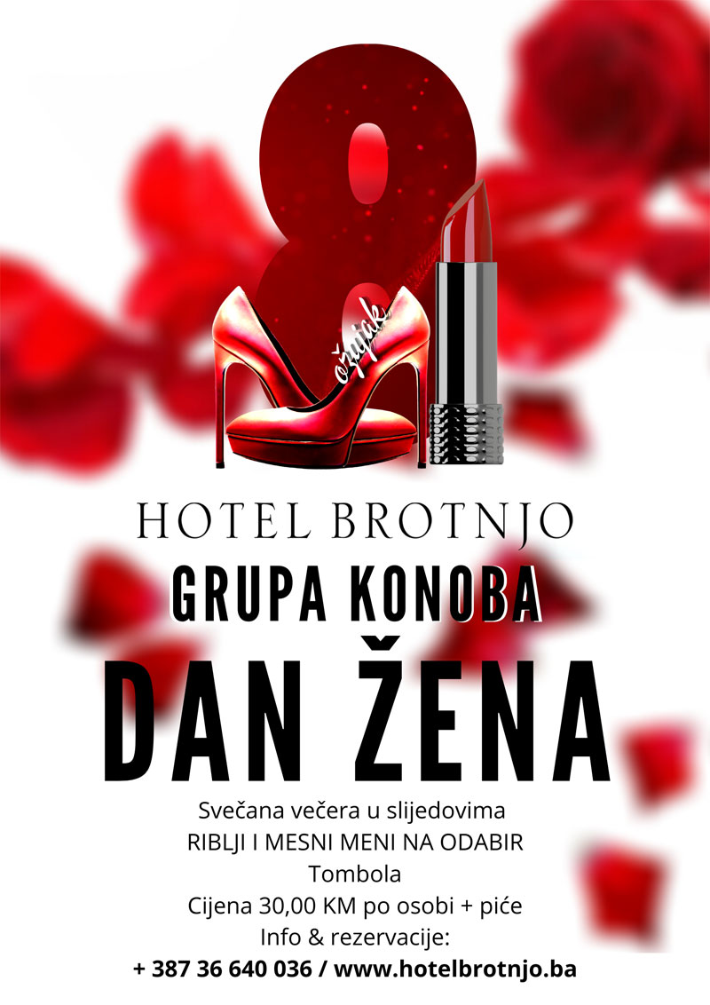 8. ožujka Hotel Brotnjo organizira proslavu povodom Dana žena uz vrhunsku zabavu i odličnu gastro ponudu.