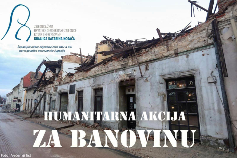 Županijski odbor Zajednice žena HDZ-a BiH „Kraljica Katarina Kosača“ Hercegovačko-neretvanske županije uspješno je završio humanitarnu akciju „Za Banovinu“. Za potresom pogođena područja u Republici Hrvatskoj Zajednica žena HNŽ-a prikupila je hvalevrijedan iznos od 12.000 KM.