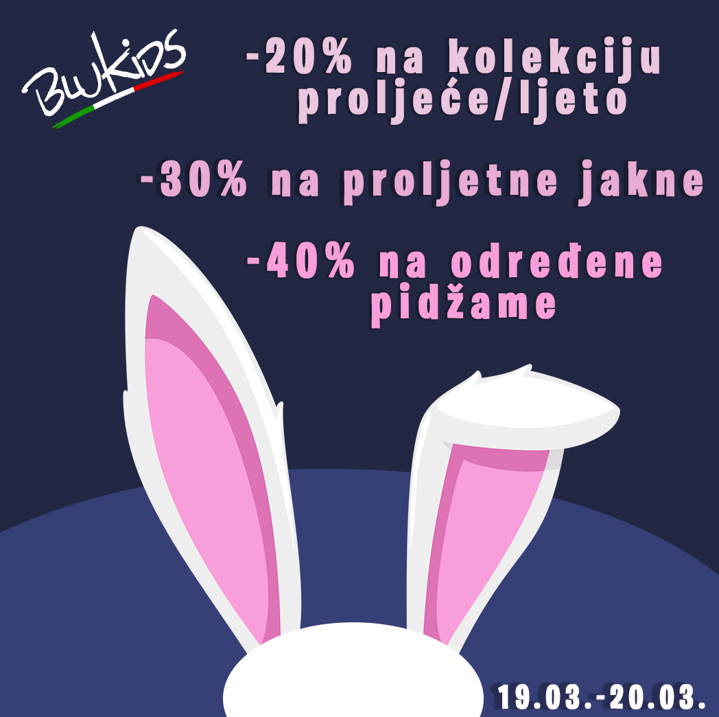 Kolekcija proljeće/ljeto 2021 razveselit će vaše najmlađe lijepim i udobnim modelima, a samo ovaj vikend (19. i 20.03.2021.) očekuje vas popust -20% na kompletan asortiman trgovine, -30% na proljetne jakne, te -40% na određene linije pidžama!