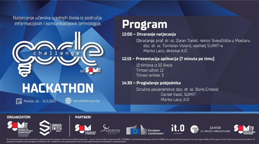 Centar za informacijske tehnologije Sveučilišta u Mostaru – SUMIT i Informatičko – tehnička udruga studenata Switch u suradnji sa srednjim školama u kojima se nastavni plan i program izvodi na hrvatskom jeziku organiziraju Hackathon za učenike srednjih škola.