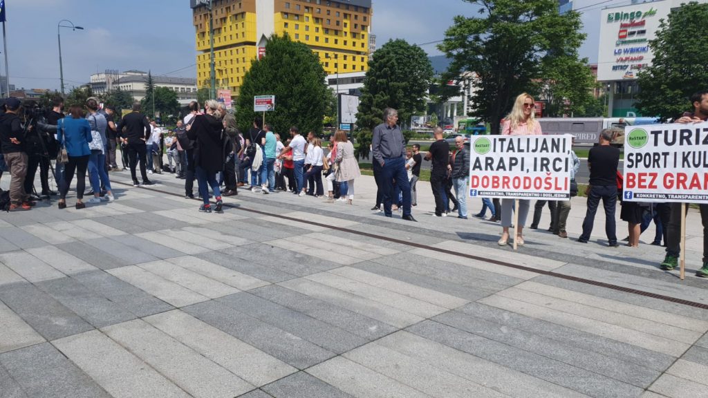 Danas je u 11 sati ispred zajedničkih institucija Bosne i Hercegovine u Sarajevu održan prosvjed turističkih djelatnika koji traže žurnu izmjenu propisa o lakšem ulasku u BiH, kako bismo imali barem nekakve šanse za oporavak i spas turističke sezone.