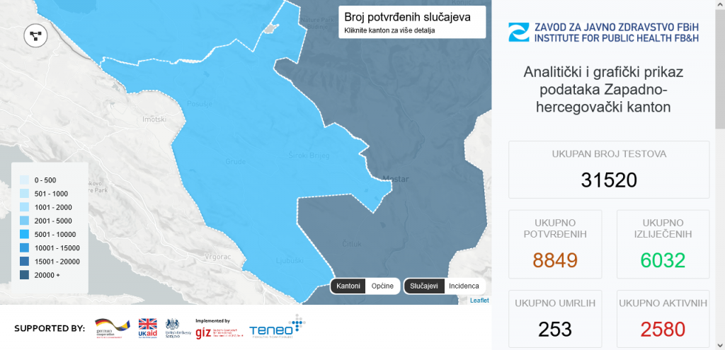 Tko održava spomenuti portal i za koje novac nije poznato, ali da je održavanje “na vrhunskoj razini” govori podatak da na njoj stoji informacija kako u Županiji Zapadnohercegovačkoj trenutno ima 2580 aktivnih slučajeva, a stvarna brojka je ukupno 5 (pet).