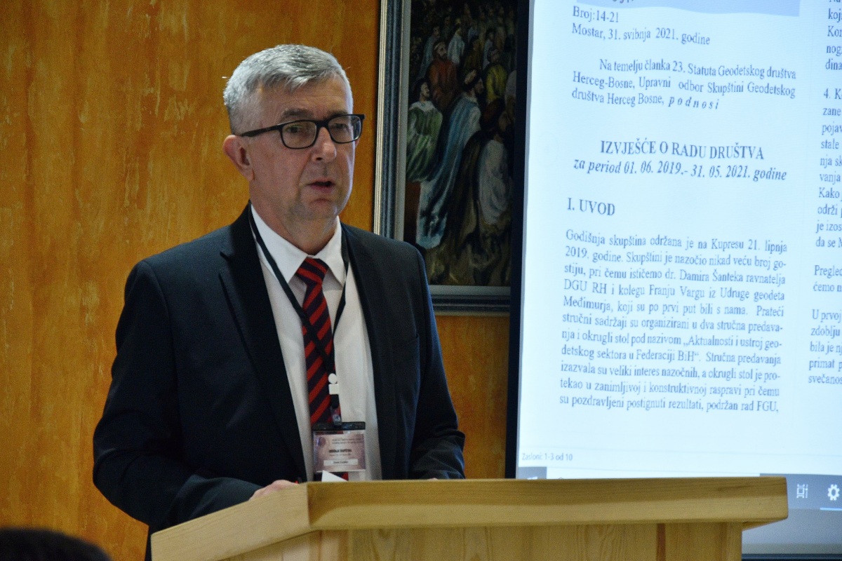 Uz članove Društva u radu Skupštine sudjelovali sugosti iz Republike Hrvatske i Bosne i Hercegovine. S obzirom da 2020. godine godišnja skupština, zbog pandemije Korona virusa, nije održana uradnom dijelu podnesena su i usvojena: Izvješćeo radu i Izvješće o financijskom poslovanju uprotekle dvije godine, te Program rada i Proračun za2021/2022.godinu. Također je usvojeno Izvješće o radu Fondacije za stipendiranje studenata geodezije i geoinformatike.