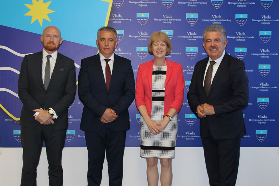 Dr. sc. Nevenko Herceg, predsjednik Vlade i Šerif Špago, predsjedajući Skupštine Hercegovačko-neretvanske županije primili su danas u službeni posjet Wendy Morton, ministricu za europsko susjedstvo i Ameriku u Ministarstvu za vanjske poslove, Commonwealth i razvoj Ujedinjenog Kraljevstva, u pratnji NJ.E. Matthewa Fielda, veleposlanika Ujedinjenog Kraljevstva Velike Britanije i Sjeverne Irske.
