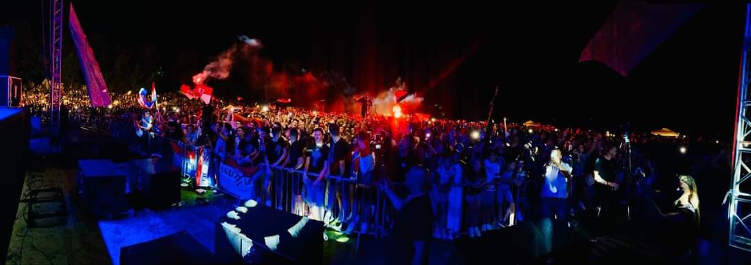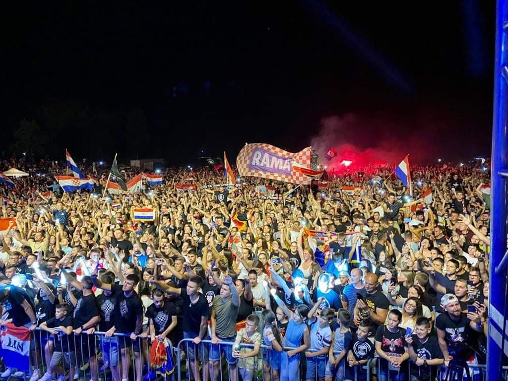 Marko Perković Thompson održao je koncert u nedjelju navečer pred nekoliko tisuća ljudi na stadionu Boljava u Drinovcima kod Gruda.