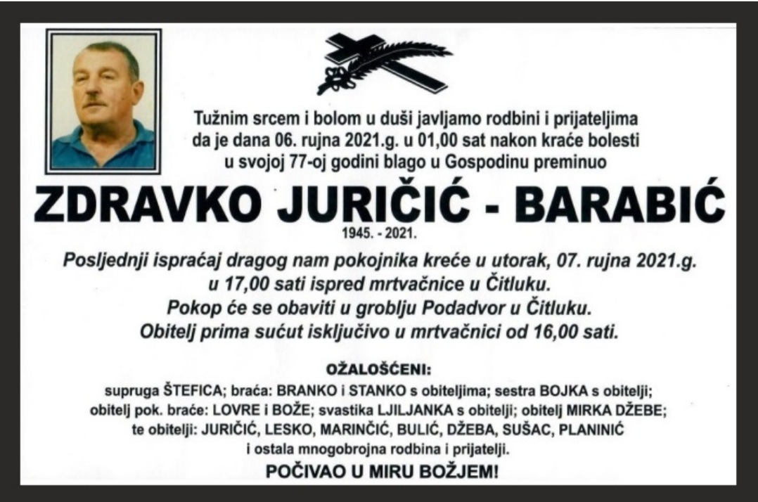 Danas je u 77-oj godini preminuo Zdravko Juričić – Barabić.