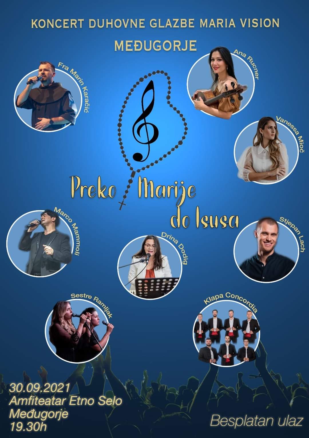 Maria Vision Međugorje organizira svoj prvi humanitarni koncert duhovne glazbe pod nazivom “Preko Marije do Isusa”.