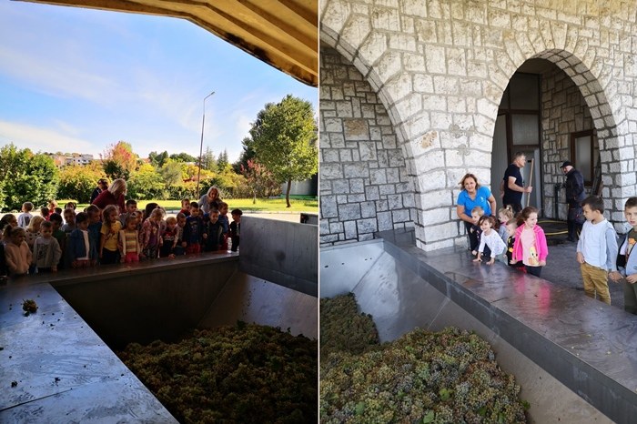Budući da je u tijeku berba različitih vinskih sorti na vinarijinim plantažama ovo je bio pravi trenutak da se mališani upoznaju s cjelokupnim procesom prerade grožđa i proizvodnje visokokvalitetnih vina.