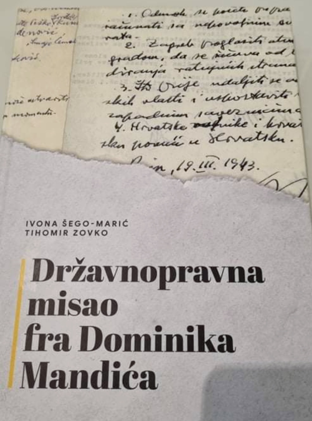 Ovih dana svjetlo je ugledala knjiga “Državnopravna misao fra Dominika Mandića” čiji su autori naša Broćanka dr.sc. Ivona Šego Marić i doc.dr.sc. Tihomir Zovko.