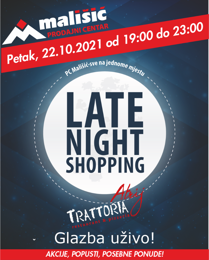 Prigodu za odličnu kupovinu donosi vam još jedan Late night shopping u prodajnom centru Mališić Međugorje u petak,22.10.od 19:00 -23:00 sati.
