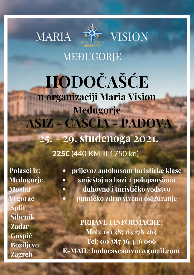 Maria Vision Međugorje organizira prvo hodočašće u Asiz, Casciu i Padovu 25.11. 2021. – 29.11.2021.