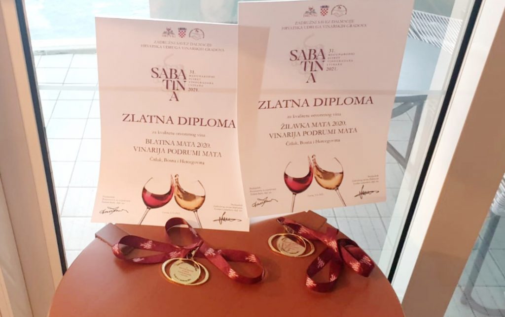 Na ovogodišnjoj Sabatini nagrađena su dva Broćanska vina, točnije obje zlatne diplome za kvalitetu otvorenog vina, Žilavke i Blatine (berba 2020.), pripale su Vinariji “Podrumi Mata” iz Gornje Blatnice u vlasništvu obitelji Joze Vučića.