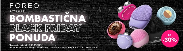 FOREO otkriva odličnu ponudu za Black Friday 2021. – uz nevjerojatne popuste do 30% na legendarne beauty tech uređaje u kojima uživaju brojne svjetske zvijezde, po posebnim cijenama će se moći kupiti i uređaji najnovije generacije uključujući LUNA 3, UFO 2 i BEAR! Ne propustite ovaj Black Friday u znaku napredne tehnologije!