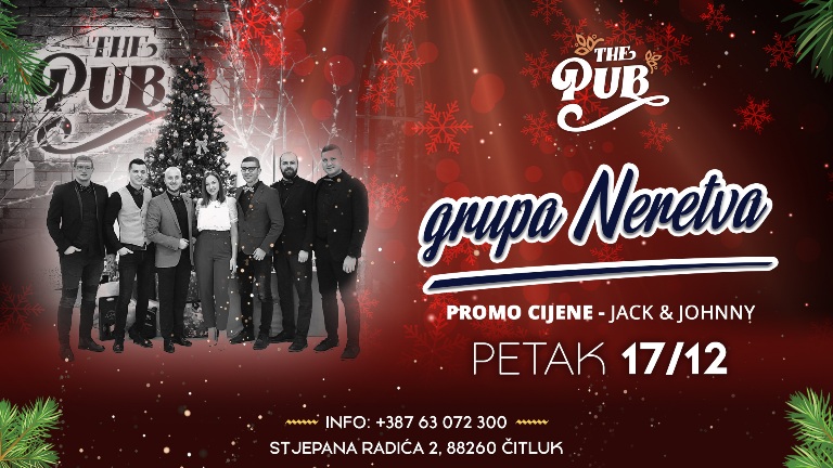 Večer ranije, u petak 17.12. uživajte u dobroj zabavi uz Grupu Neretva.